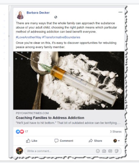 In addition to posting on content that is relevant to your audience, you want to post content that shows your expertise. Your posts should not only be interesting to prospects but also show your expertise. The above post gives some useful tips for families addressing addiction.