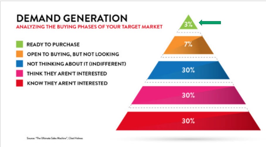 A key part of your success with social media is going to be how consistently you post. Consistency keeps you top of mind with prospects. This is important because if you are only reaching out to people who have expressed an interest - then you are likely missing 97% of your potential audience.