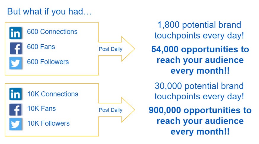 As the number of connections increases - so does your potential impact. And, that number increases with the number of platforms you are using to engage.