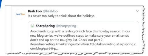 Here’s an example of how a post that isn’t directly related to a company’s mission but is still relevant to their prospects.